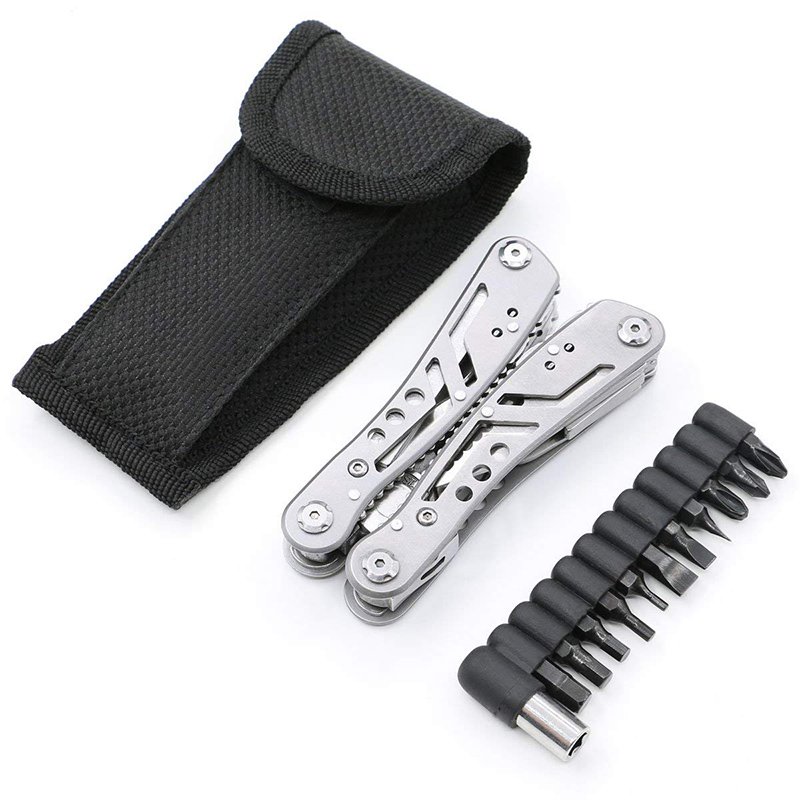 คีมอเนกประสงค์สแตนเลสพร้อมประแจและที่เปิดขวด มีหัวเปลี่ยน 10 ชิ้น พร้อมกระเป๋าไนลอน